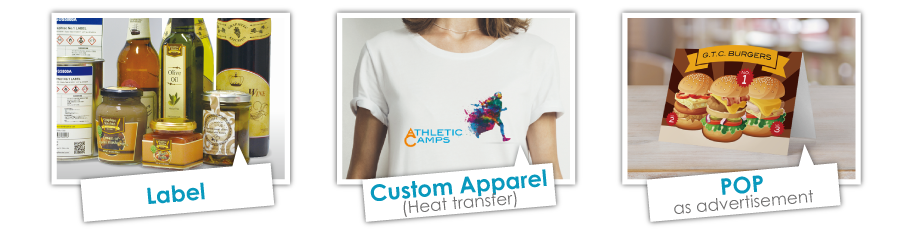It is suitable for post-processing of the printed media created with the print-on-demand in small production runs for producing various products such as labels, heat transfer sheets for custom apparel and the POP as table advertising.